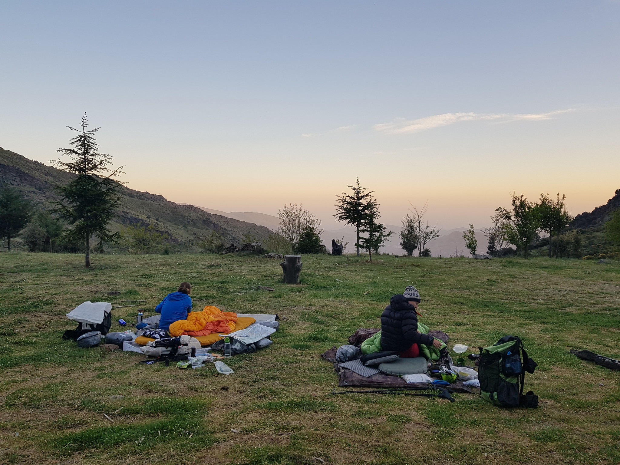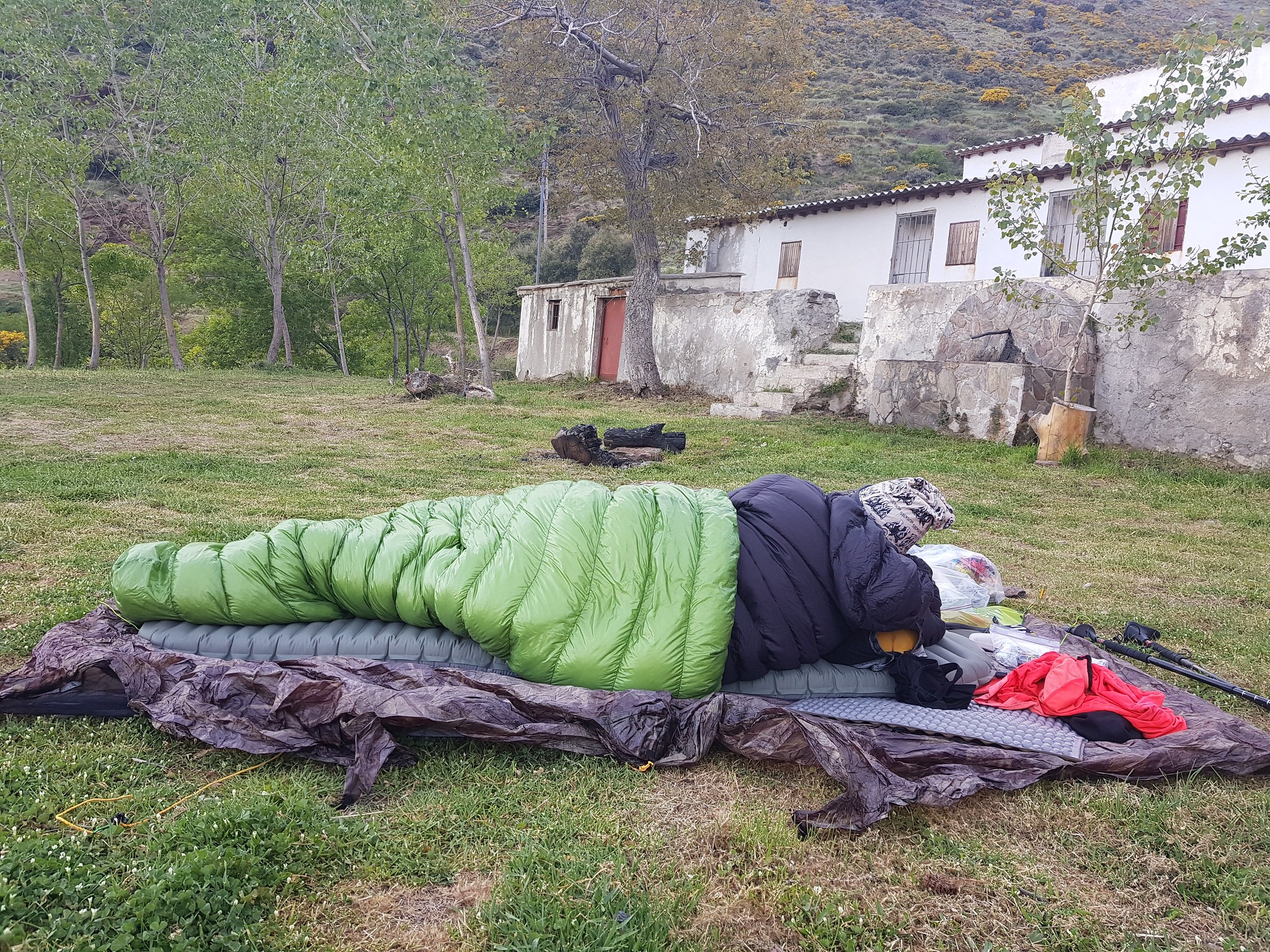 Ik leg mijn spullen dan ook op het gras, vul mijn waterfles, maak een opkikker klaar en sla het avondeten verder over. Wat ik niet oversla is me afsponzen met schoon water: als je bezweet je slaapzak in gaat, trekt dat zout vocht aan en kan je het koud krijgen. Daarna, ogen dicht en slapen!